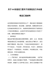 关于XX街道党工委关于发展党员工作自查情况汇报材料