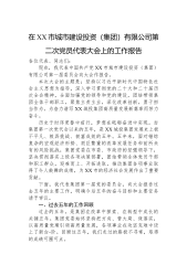 在XX市城市建设投资(集团)有限公司第二次党员代表大会上的工作报告