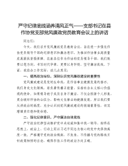 严守纪律底线涵养清风正气——支部书记在县作协党支部党风廉政党员教育会议上的讲话同志们:今天,我们召开党风廉政党员教育会议,旨在进一步强化作协党员领导干部的纪律意识和廉洁意识,为推动作协事业高质量发展提供坚强保障。在座各位作为作协的党员领导干部,我们既要以笔为剑,书写时代华章,更要以身作则,坚守廉洁底线。下面,我结合工作实际,谈几点意见:一、提高政治站位,深刻认识党风廉政建设的重要性党风廉政建设是党的生命线,是作协事业健康发展的基石。我们身处文化领域,肩负着传播正能量、弘扬社会主义核心价值观的使命。如果领导班子成员自身不廉洁,不仅会损害个人形象,更会破坏作协的公信力,影响文化事业的健康发展。所以...