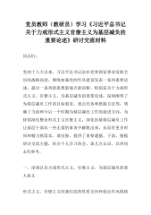 党员教师(教研员)学习《习近平总书记关于力戒形式主义官僚主义为基层减负的重要论述》研讨交流材料
