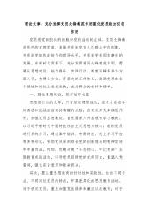 党委书记在国有企业理论学习中心组专题学习《党组讨论和决定党员处分事项工作程序规定》研讨会上的发言同志们:党的纪律是党的生命线,党纪处分工作是全面从严治党的重要环节。习近平总书记强调,“要以严的基调强化正风肃纪,坚决打赢反腐败斗争攻坚战持久战”。《党组讨论和决定党员处分事项工作程序规定》的修订与实施,为我们市属国有企业党委规范开展党员处分工作提供了重要遵循,是我们落实全面从严治党主体责任、加强党的纪律建设的有力抓手。我们必须深刻领会其精神实质,将规定要求切实贯彻到工作实践中,确保每一项纪律处分都经得起检验,为国有企业的高质量发展营造风清气正的政治生态。借此机会,围绕此次专题学习,我谈几点体会,以...