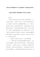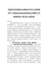 以严实举措贯彻程序规定,推动纪检监察工作高质量发展——在市纪委理论学习中心组专题学习研讨会上的发言同志们:习近平总书记强调,“要完善党和国家监督体系,更好发挥政治巡视利剑作用,增强对‘一把手’和领导班子监督实效”。《党组讨论和决定党员处分事项工作程序规定》的修订发布,为我们在新形势下规范党组讨论和决定党员处分事项,提供了明确的指导和遵循。下面,我结合工作实际,就如何贯彻落实《规定》,谈几点体会。一、深刻领会《规定》要义,夯实履职尽责根基(一)明确责任主体,强化党组担当。习近平总书记指出,“全面从严治党是各级党组织的职责所在”。《规定》明确党组讨论和决定本单位党员党纪处分事项,这进一步压实了党组...