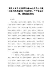 副市长学习《党组讨论和决定党员处分事项工作程序规定》交流发言:严守党纪红线,强化责任担当