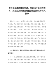 国有企业廉政廉政党课:常态化开展纪律教育,为企业高质量发展提供坚强的纪律作风保障