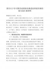 某市关于学习教育成果转化推进高质量发展经验交流汇报材料尊敬的各位领导、同志们:大家好!在新时代新征程的历史方位下,如何将学习教育成果高效转化为推动高质量发展的强劲动能,是我们面临的重要课题。我市坚持以习近平新时代中国特色社会主义思想为指导,以深入贯彻中央八项规定精神为重要抓手,紧扣省委“四高四争先”工作要求,聚焦现代化“三城”建设目标,以学促干、以干践行,探索出一条学查改一体推进的有效路径。现将主要做法汇报如下:一、强化政治引领,构建责任落实体系(一)高位谋划,筑牢思想根基学习教育是提升党员干部政治素养、推动事业发展的重要保障。我市深刻认识到,只有站在政治高度谋划学习教育,才能确保方向正确、行...