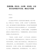 党课讲稿:讲实话、办实事、求实效,以实际行动冲刺全年目标,推动公司发展