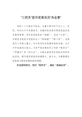 2022年基层党建工作推进发言:坚持标准落实责任着力提高农村发展党员质量XX是农业大省,每年发展农村党员X万名左右,占全省新发展党员总数的1/3。近年来,XX省认真贯彻党中央部署和中组部要求,坚持把做好农村发展党员工作作为基层党建重点任务,严格标准、严密程序、严明责任,着力提高农村发展党员质量,为推进农村改革、完善基层治理、促进乡村振兴提供有力支撑。一、以严格的政治标准把住入口。坚持把政治标准放在首位,全面深入考察入党动机和政治素质,确保每名新党员政治合格、质量过硬。一是明确高线。鲜明提出“5个能够”的要求,即:能够努力学习XXX新时代中国特色社会主义思想,能够坚定贯彻中央和上级党组织决策部署...