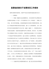 xx区上半年发展党员工作情况报告今年以来,xx区认真贯彻《中国共产党发展党员工作细则》,落实“控制总量、优化结构、提高质量、发挥作用”总要求,严格执行发展党员计划,加强工人、农民工非公有制企业等群体、领域发展党员工作,确保今年全区完成新发展党员目标。一、基本情况截止x年x月x日,xx区各基层党(工)委共发展党员x人,完成发展党员计划情况x%,其中发展大专以上党员x人,占发展党员总数的x%;发展x岁以下党员x人,占发展党员总数的x%;农民党员x人、青年教师党员x人、发展非公经济组织从业人员党员x人、发展社会组织从业人员党员x人;发展农村致富带头人党员x人,发展企业生产一线人员党员x人。二、主要做...