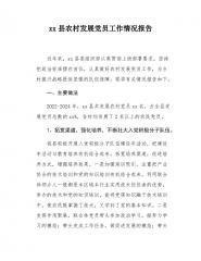 县委组织部关于发展党员工作报告按照市委组织部要求,现将**县党员发展经验做法报告如下:一、主要做法(一)构建三链融合动态监测体系,压实党组织书记领衔责任。县委组织部制定《**县*-*年发展党员工作三年规划》,明确工作目标、重点和具体措施,县创新构建党员发展全周期管理体系,通过三阶递进培育模式优化队伍建设。建立1+3制度框架,出台《新时代党员发展质量提升行动方案(2023-2025)》,配套制定重点对象动态监测、发展质量追溯评估等x项机制,将农村、非公领域等x类薄弱环节纳入专项攻坚。实施季度动态监测+半年专项督查+年度述评考核的层级管理,建立红黄绿三色预警系统,对连续两年未发展党员的xx个行政村...