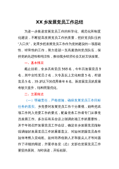目录发展党员工作总结................................................2发展党员工作总结(镇乡)...................................6发展党员工作总结(县委组织部)..........................9发展党员工作总结(镇乡).................................13发展党员工作总结(街道).................................17发展党员工作情况汇报(市委组织部).................22发展党员工作情况汇报..............