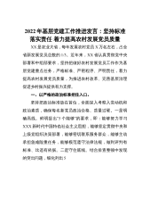 2022年基层党建工作推进发言:坚持标准落实责任着力提高农村发展党员质量XX是农业大省,每年发展农村党员X万名左右,占全省新发展党员总数的1/3。近年来,XX省认真贯彻党中央部署和中组部要求,坚持把做好农村发展党员工作作为基层党建重点任务,严格标准、严密程序、严明责任,着力提高农村发展党员质量,为推进农村改革、完善基层治理促进乡村振兴提供有力支撑。一、以严格的政治标准把住入口。坚持把政治标准放在首位,全面深入考察入党动机和政治素质,确保每名新党员政治合格、质量过硬。一是明确高线。鲜明提出“5个能够”的要求,即:能够努力学习XXX新时代中国特色社会主义思想,能够坚定贯彻中央和上级党组织决策部署,...