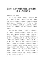 在2024年全市基层党员队伍建设专题推进会上的汇报发言尊敬的各位领导,同志们:近年来,**县严格落实发展党员“控制总量、优化结构、提高质量、发挥作用”总要求,坚持把牢政治首关、强化教育培养、优化整体结构,不断提高发展党员工作“含金量”,建强党员队伍。根据会议安排,现将有关工作进展情况汇报如下:坚持把政治标准放在首位,加强政治把关。始终把政治标准放在第一位置,严格落实发展党员工作细则相关规定,紧盯关键环节,严把关键节点,对发展对象全面开展政治“体检”,确保新发展党员在政治上信得过、靠得住。建立发展党员经常性谈心谈话制度,对每一名党员至少做到“四必谈”,确保全方位、多视角了解党员基本情况、思想动态...