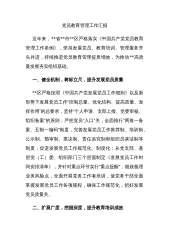 公司关于开展《20XX—2023年全国党员教育培训工作规划》情况自评报告多年来年来,公司党委按照《20XX—2023年全国党员教育培训工作规划》、集团党委工作部《关于落实的实施意见》要求,积极创新党员教育培训方式,不断丰富教育培训内容,严格落实培训责任,着力构建党员教育培训长效机制。截至目前,公司党委轮训培训基层党组织书记共X余人次,各基层党组织组织党员培训X余人次,新发展党员X人次。通过教育培训,党员的党性修养和能力素质大幅提升,服务居民更加自觉,展现党员的担当更加主动,先锋模范作用进一步凸显,为推进公司改革发展提供了重要组织保证。一、主要做法多年来,公司党委始终把学习贯彻习近平新时代中国特...