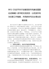 学习《习近平关于加强党的作风建设重要论述摘编》读书班交流发言:以优良作风为妇联工作赋能,共筑新时代妇女事业发展新篇党中央决定于2025年全国两会后至7月,在全党开展深入贯彻中央八项规定精神学习教育。习近平总书记在贵州、云南考察时,对此次学习教育提出明确要求,强调各级党组织要精心组织,推动党员、干部增强定力、养成习惯,以优良作风凝心聚力、干事创业。《习近平关于加强党的作风建设重要论述摘编》为我们提供了深刻指引。作为XX市妇女联合会党组书记、主席,深入学习这一论述,对推动妇联工作高质量发展意义重大。通过学习,我深刻认识到,必须将党的作风建设要求贯穿于妇联工作的各方面、全过程,以优良作风凝聚妇女力量...