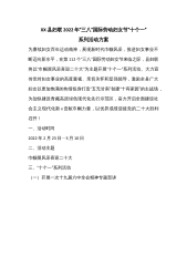 XX县妇联2022年“三八”国际劳动妇女节“十个一”系列活动方案为赓续妇女百年运动精神,展现新时代巾帼风采,推进妇女事业不断迈向新水平,在第112个“三八”国际劳动妇女节来临之际,县妇联将以“巾帼展风采喜迎二十大”为主题开展“十个一”系列活动。大力宣传党对妇女事业的高度重视、亲切关怀和坚强领导,激励全县广大妇女以更加饱满的热情投身打造“五无甘南”创建“十有家园”的主战场,为加快建设青藏高原绿色现代化先行示范区,奋力开启全面建设社会主义现代化新x贡献巾帼力量,以优异成绩迎接党的二十大胜利召开!一、活动时间2022年2月23日—3月10日二、活动主题巾帼展风采喜迎二十大三、“十个一”系列活动(一)...