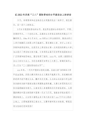 在全县庆祝第114个国际劳动妇女节暨“三八”表彰大会上的讲话同志们:在这春暖花开、万物复苏的美好时节,很高兴与各位妇女同胞欢聚一堂,共同庆祝第114个国际劳动妇女节。在此,我谨代表县委、县政府,向在座的各位妇女同胞,并通过你们向全县广大妇女和妇女工作者致以节日的问候!向受到表彰奖励的先进集体和先进个人表示热烈的祝贺!向所有关心支持我县妇女事业发展的各界人士表示衷心的感谢!过去的一年,全县广大妇女以自强不息、奋发进取的精神风貌,积极投身全县改革发展实践,在各个领域、各条战线上充分发挥自身的聪明才智,全县各级妇联组织牢牢把握“党政所急、妇女所需、妇联所能”的工作定位,在联系和服务妇女儿童方面做了许...
