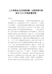 在市文化和旅游局中心组学习上的发言:找准抓实五个着力点推动旅游工作高质量发展同志们:5月17日,全国旅游发展大会在北京召开,这次会议是党中央首次以旅游发展为主题的召开的重要会议。“改革开放特别是党的十八大以来,我国旅游发展步入快车道,形成全球最大国内旅游市场,成为国际旅游最大客源国和主要目的地,旅游业从小到大、由弱渐强,日益成为新兴的战略性支柱产业和具有显著时代特征的民生产业、幸福产业,成功走出了一条独具特色的中国旅游发展之路。”习近平总书记对旅游工作作出重要指示指出并强调,要着力完善现代旅游体系,加快建设旅游强国,推动旅游业高质量发展行稳致远。习近平总书记的重要指示思想深邃、高屋建瓴,为我们...