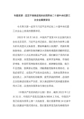 专题党课:坚定不移推进党的自我革命二十届中央纪委三次全会重要讲话今天和大家一起学习习近平总书记在二十届中央纪委三次全会上发表的重要讲话。2022年10月16日,中国共产党第XX次全国代表大会在北京召开。习近平总书记指出,我们党作为世界上最大的马克思主义执政党,要始终赢得人民拥护、巩固长期执政地位,必须时刻保持解决大党独有难题的清醒和坚定。经过党的十八大以来全面从严治党,我们解决了党内许多突出问题,但党面临的执政考验、改革开放考验、市场经济考验、外部环境考验将长期存在,精神懈怠危险、能力不足危险、脱离群众危险、消极腐败危险将长期存在。全党必须牢记,全面从严治党永远在路上,党的自我革命永远在路上,...