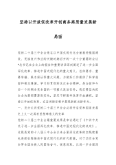 主题党课讲稿:深刻理解和把握进一步全面深化改革的主题,紧扣推进中国式现代化,将改革进行到底推进中国式现代化是新征程上凝聚全党全国人民智慧和力量的旗帜,也必然是进一步全面深化改革的主题。习近平总书记深刻指出,“进一步全面深化改革,要锚定完善和发展中国特色社会主义制度、推进国家治理体系和治理能力现代化这个总目标,紧扣推进中国式现代化”。党的二十届三中全会审议通过的《中共中央关于进一步全面深化改革、推进中国式现代化的决定》(以下简称《决定》)指出,要“紧紧围绕推进中国式现代化进一步全面深化改革”。这是我们党领导改革开放的成功经验和战略选择,有其深刻的历史逻辑、理论逻辑、实践逻辑、发展逻辑和改革逻辑。...
