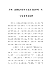 主题党课讲稿:深刻理解和把握进一步全面深化改革的主题,紧扣推进中国式现代化,将改革进行到底