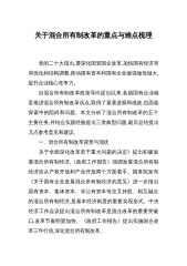 关于混合所有制改革的重点与难点梳理