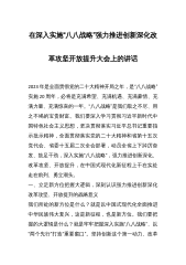 在全市解放思想、改革创新、扩大开放、担当实干和防范化解重大风险会议上的讲话同志们:今天,我们在这里召开全市解放思想、改革创新、扩大开放、担当实干和防范化解重大风险会议,主要任务是深入学习贯彻XJP新时代中国特色社会主义思想和XJP总书记对**工作的重要指示批示和重要题词精神,贯彻落实***书记在全区省级领导和厅级主要负责同志专题研讨班上的讲话精神,准确把握**当前面临的新形势新任务新挑战,动员全市上下进一步解放思想、改革创新、扩大开放、担当实干,坚持底线思维着力防范化解重大风险,奋力开创**改革发展新局面,为打造西江经济带龙头城市和万亿工业强市持续夯实基础,以优异成绩向党的二十大献礼。一、深刻...
