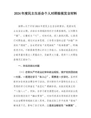 党员个人2024年专题民主生活会(组织生活会)对照检查发言提纲(四个带头)党员个人2024年专题民主生活会(组织生活会)对照检查发言提纲(四个带头)按照市委《关于高质量开好2024年度专题民主生活会的通知》要求和局党组相关工作部署,我围绕“四个带头”的重要要求,结合自身思想和工作实际,认真开展对照检查,深刻剖析问题根源,明确努力方向和整改措施。现将对照检查情况汇报如下:一、存在的问题(一)在带头严守政治纪律和政治规矩,维护党的团结统一方面民是政治理论学习深度不足。虽然积极参加各类政治理论学习活动,但在学习新时代中国特色社会主义思想和党的二十大及二十届三中精神时,存在一知半解、浅尝辄止的情况。例...