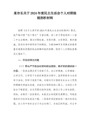 市政协机关党组成员、副秘书长关于2024年度民主生活会个人对照检视发言材料根据党中央和省委、市委关于召开2024年度民主生活会的安排部署,我高度重视,认真对照具体要求,紧扣本次民主生活会主题,严格对标对表,通过自己查摆、谈心谈话、征求意见、走访调研等方式,围绕“四个带头”,结合政协机关工作实际,深入查找自身存在的问题和不足,深挖问题产生根源,全面抓好整改提升。现将对照检查情况汇报如下。一、存在的突出问题(一)在带头严守政治纪律和政治规矩,维护党的团结统一方面。一是理论学习深度不够。对新时代中国特色社会主义思想等党的理论体系的学习,存在浅尝辄止的情况。在组织机关理论学习时,虽按要求完成了学习任务...