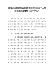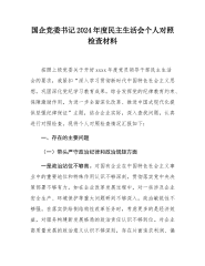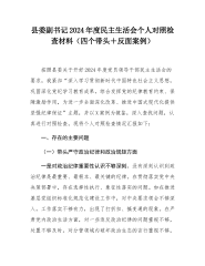 市委社会工作部党组书记2024年民主生活会个人对照检查发言材料(四个带头)根据关于开好2024年度专题民主生活会的通知要求,我紧扣本次民主生活会主题,严格对照x个方面重点查摆问题,深刻剖析思想根源,明确整改措施和努力方向。现将情况汇报如下。一、上年度民主生活会整改落实情况(一)深入学习贯彻新时代中国特色社会主义思想,坚定捍卫“两个确立”、坚决做到“两个维护”方面。一是坚持集体学与自主学相结合。开展集中学习研讨x次,组织全体党员干部集中学习《谈治国理政》第四卷、《中国共产党纪律处分条例》等重要党内法规。通过学习不断强化政治意识和责任担当。二是扎实开展党纪学习教育。组织各类党纪专题讲座x场,举办党...