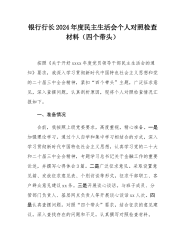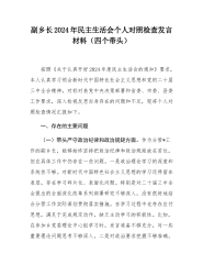 2024年民主SH会个人对照检查剖析材料(领导班子成员个人发言提纲)