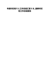 年度村纪检个人工作总结汇报5篇_最新村纪检工作总结报告想必许多人都在为如何写好年度村纪检个人工作总结汇报5篇_最新村纪检工作总结报告而烦恼吧。下文为您细致准备了关于《年度村纪检个人工作总结汇报5篇_最新村纪检工作总结报告》开头怎么写,但愿能够帮助到大家,一起学写作,当然您还可以搜索到更多与《年度村纪检个人工作总结汇报5篇_最新村纪检工作总结报告》相关的范例。纪检工作是党政工作的重中之重,特别是在新时期、新形势下,全国各地都在开展反腐倡廉建设。下面是小编为大家整理的有关年度村纪检工作总结汇报,希望对你们有帮助!年度村纪检工作总结汇报1“一年以来,我镇纪检监察工作以_”大精神为指导,以科学发展观为...