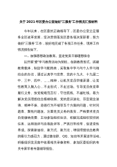 县委组织部长履行2021年度全面从严治党主体责任情况汇报按照通知要求,现将2021年度履行全面从严治党主体责任情况汇报如下。一、履行全面从严治党主体责任情况(一)全面压实主体责任。认真贯彻执行中央、省委、市委落实全面从严治党各项要求,制定2021年县委全面从严治党工作要点和责任清单,指导把关全县各党委(党组)制定落实全面从严治党主体责任年度任务安排和责任清单,避免出现“雷同”安排和清单等问题。年初以来,召开全面从严治党工作会议2次,编印2021年度县直党委(党组)及各乡镇党委履行全面从严治党主体责任情况报告汇编2册。(二)认真落实党风廉政建设责任制。认真履行第一责任人职责,听取班子成员履行全面...