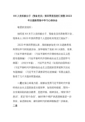 XX入党积极分子(预备党员)第四季度思想汇报暨2023年主题教育集中学习心得体会敬爱的党组织:按照党XX关于入党积极分子、预备党员培养教育计划,现将本人2023年第四季度个人思想有关情况汇报如下:2023年第四季度以来,我积极参加党XX主题教育系列理论学习和实践活动,深学细悟了党的XX大报告、党章、《习近平著作选读》《习近平新时代中国特色社会主义思想专题摘编》《习近平新时代中国特色社会主义思想学习纲要》(2023年版)、习近平总书记《论党的自我革命》《习近平新时代中国特色社会主义思想的世界观和方法论专题摘编》《习近平关于调查研究论述摘编》等重点篇目。取得了几个方面的明显成效。一是在凝心铸魂方面...