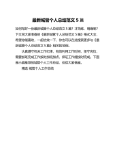 职称个人总结范文和职称个人总结不过《职称个人总结范文和职称个人总结不过》开头如何写,希望能够帮助到大家!专业技术职称评审开始了,怎么样写好专业技术职称总结下面小编给大家整理了关于职称个人总结范文,方便大家学。职称个人总结范文1伴随着施工机械的阵阵轰鸣,不知不觉中,一年的工作时间转瞬即逝。或许一年的时光对于整个历史长河来说,只不过是沧海一粟,不值一提;对于人的整个生命来说也只不过是短暂的几十分之一,不应该太过留恋。但是,这一年对于我这个刚刚走入社会踏上工作岗位的的学生来说可以用"意义非凡"四字来概括。在这近一年里我深刻体会到了做为一个施工员的艰辛和快乐,要成为一个好的施工员的痛苦和压力。我把自己...