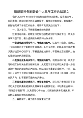 组织部常务副部长个人三年工作总结范文我于20xx年xx月至今担任组织部常务副部长。过去的三年,在区委和上级组织部门的正确领导下,我坚持求真务实,勤政廉政,较好地完成了各项工作任务。现将有关情况总结如下:一、深入学习,不断提高自身综合素质注重理论武装,始终坚持把加强思想政治学习摆在首位,带头争做学习型干部,着力提高能力素质和执政水平。一是强化政治理论学习,增强政治底气。认真学习党章、党的二十大精神和习近平新时代中国特色社会主义思想,积极参加主题教育以及部机关中心组学习,不断提升政治素养,牢固树立宗旨意识,夯实理想信念的思想基础。二是强化业务知识学习,增强能力底气。利用业余时间,认真学习组织工作有...