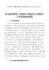 学习宣传贯彻《中国共产党政法工作条例》工作总结情况报告(2)
