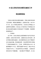 关于推进新时代公安机关执法权力运行机制改革的调研报告公平正义是执法司法工作的生命线。习近平总书记多次强调,“要抓住关键环节,完善执法权力运行机制和管理监督制约体系,努力让人民群众在每一起案件办理、每一件事情处理中都能感受到公平正义”。进入新时代,执法领域“顽瘴痼疾”已然成为法治公安建设的短板弱项和亟需解决的实际问题,究其原因,最根本的还是执法权力运行机制不够科学、管理监督不够到位,因此必须坚持问题导向,完善制度机制、加强执法监督,确保执法权力始终在法治的轨道内运行。现结合学习贯彻习近平法治思想和近年来XX公安法治改革探索有益经验,就纵深推进新时代执法权力运行机制改革作如下思考。一、推进新时代执...