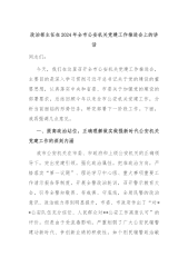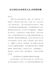 深入推动新时代公安机关建设,不断提升人民群众获得感幸福感——xx市公安局局长专题党课进入新时代,我们党需要建设一支什么样的公安队伍,人民公安如何更好履行职责使命?我想做好当前公安工作必须要坚持问题导向,认真检视反思,抓好整改落实,着力推动xx公安工作长远发展。(一)要在加强政治建设、筑牢忠诚警魂上下功夫,确保党对公安工作的绝对领导。“公安姓党”是公安机关永远不变的根和魂。无数经验和教训告诉我们加强公安政治建设,确保党对公安工作的绝对领导任何情况下都不能旁落在这方面不仅新一届宜黄县局党委要重点抓好,全县公安机关也要全力推动,突出抓好“三个方面”:一要旗帜鲜明讲政治。紧密结合党纪学习教育,公安机关...