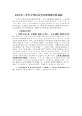 2022年上半年公安机关党支部党建工作总结上半年以来,在上级党委坚强领导下,在机关党委的精心指导下,**党支部深入学习贯彻习近平中国特色社会主义思想,全面贯彻党的十九大和十九届二中、三中、四中、五中、六中全会精神,切实加强党的领导,进一步压实压紧管党治警政治责任,充分发挥党建引领作用,不断强化以党的建设为根本的基层基础工作,全面推进工作高质量发展。现将**党支部党建工作情况报告如下。一、主要做法及成效(一)聚焦主责主业,切实履行党建主体责任。一是切实履行党组织主体责任。坚持党建工作和业务工作同步谋划、同步推进,将党建工作纳入年度工作计划;坚持党建例会制度,每月召开一次党建工作专题会议,就党支部...