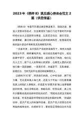 两篇:2023年12月综合频道《榜样8》专题节目观后感心得体会文稿(供参考)榜样是一面旗帜,是一种力量,激励着每个共产党员砥砺前行。为深入学习贯彻习近平新时代中国特色社会主义思想,持续推动主题教育走深走实,教育引导基层党组织和广大党员干部学习榜样、争当先进,主动作为、担当有为,中央组织部、中央学习贯彻习近平新时代中国特色社会主义思想主题教育领导小组办公室、中央广播电视总台联合制作了《榜样8》专题节目。节目邀请钱七虎、刘玲琍、唐菊兴、吴惠芳、李桂科、热孜万古丽·沙吾提6名党员和浙江省余姚市梁弄镇横坎头村党委参加录制,通过典型事迹展示、现场访谈、重温入党誓词等形式,生动展现学习践行习近平新时代中国...