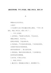 廉政党课讲稿:守牢三种底线,练就三种武功,做好三种人尊敬的各位党员同志:大家好!今天我要和大家分享的廉政党课主题是:“守牢三种底线,练就三种武功,做好三种人”。一、守牢三种底线1.法律底线:严格遵守法律法规,不违法乱纪。增强法律意识,知法守法。抵制各种诱惑,不越法律红线。2.纪律底线:严守党的纪律和规矩,不违背组织原则。自觉遵守党的各项规章制度。维护党的团结统一,服从组织安排。3.道德底线:秉持良好的道德品质,不失道德风范。培养高尚的道德情操。以身作则,引领社会风尚。二、练就三种武功1.廉洁武功:提高廉洁自律能力,抵制腐败行为。树立正确的权力观,不以权谋私。拒绝各种形式的腐败诱惑。2.担当武功...