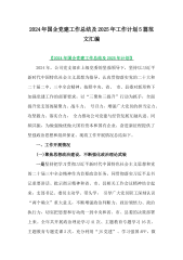 2024年国企党建工作总结及下一步工作计划范文稿【六篇】与2024年学校党委党支部党建工作总结及2025年党建工作计划(5篇)汇编供参考