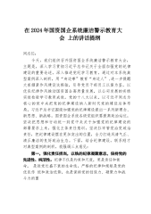 在2024年国资国企系统廉洁警示教育大会上的讲话提纲同志们:今天,我们组织召开国资国企系统廉洁警示教育大会,主题是,深入学习贯彻习近平总书记关于全面加强党的纪律建设的重要论述,深入推进党纪学习教育,通过对本系统典型案例深入剖析,用“身边事”教育“身边人”,进一步提醒大家绷紧作风建设这根弦,引导党员干部员工以案为鉴,以优良纪律作风推动国资国企高质量发展,以公司发展的实绩实效检验学习教育成效。党的十八大以来,以习近平同志为核心的党中央把党的纪律建设纳入新时代党的建设总体布局,习近平总书记围绕加强党的纪律建设提出一系列新理念、新思想、新战略。国资国企系统各级党组织要提高政治站位,坚决把思想和行动统一...
