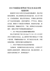 某国企领导班子2023年主题教育民主生活会“六个对照”对照检查材料根据集团《关于召开主题教育专题民主生活会的通知》精神,XX公司领导班子对照此次民主生活会主题,在认真开展理论学习、深入谈心谈话的基础上,重点围绕对照检查内容结合典型案例剖析,深入查摆问题、深刻剖析根源,明确改进方向。现将XX公司领导班子对照检查情况报告如下:一、上年度民主生活会问题整改落实情况针对2022年度民主生活会查摆出来的问题,XX公司领导班子注重在理论武装中磨练思想品质、在组织生活中锤炼党性修养、在工作实践中锻炼能力素质,问题全部得到整改落实。(一)加强思想政治建设,锤炼政治本领。班子成员始终把党的政治建设摆在首位,坚持...