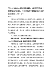 国企读书班专题党课讲稿:感悟思想伟力凝聚奋进力量,全力推动主题教育在公司走深做实(7604字)同志们:为深入推动习近平新时代中国特色社会主义思想主题教育在公司深入扎实开展,根据公司主题教育读书班课程安排,结合近期主题教育学习的收获、感悟与思考,今天我以“感悟思想伟力凝聚奋进力量,全力推动主题教育在公司走深做实”为题,跟大家一起交流,希望能给大家以启发,与大家共勉。一、深刻认识主题教育的重大意义开展主题教育,是坚持不懈用习近平新时代中国特色社会主义思想凝心铸魂、武装头脑的重大部署回望我们党一百多年的奋斗历程,之所以能够不断取得革命、建设、改革的伟大胜利和辉煌成就,很重要的一条历史经验,就是坚定维...