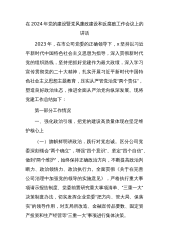 在2024年党的建设暨党风廉政建设和反腐败工作会议上的讲话2023年,在市公司党委的正确领导下,x坚持以习近平新时代中国特色社会主义思想为指导,深入贯彻新时代党的组织路线,坚持把抓好党建作为最大政绩,深入学习宣传贯彻党的二十大精神,扎实开展习近平新时代中国特色社会主义思想主题教育,压实从严管党治党“两个责任”,塑造良好政治生态,推进全面从严治党向纵深发展。现将党建工作总结如下:第一部分工作情况一、强化政治引领,把党的建设高质量体现在坚定维护核心上(一)旗帜鲜明讲政治,践行对党忠诚。区分公司党委深刻领会“两个确立”,增强“四个意识”、坚定“四个自信”、做到“两个维护”,始终保持正确政治方向,不断...