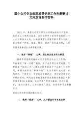 国企公司党支部高质量党建工作专题研讨交流发言总结材料