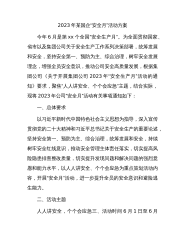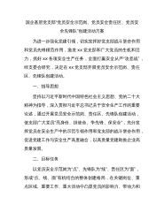 国企基层党支部“党员安全示范岗、党员安全责任区、党员安全先锋队”创建活动方案为进一步强化党建引领,切实发挥好党支部战斗堡垒作用和党员先锋模范作用,激发xx党支部和广大党员的生机和活力,抓好xx各项安全生产任务,全面打赢安全从严“攻坚战”,经支委会研究,决定在xx党支部开展党员安全示范岗、责任区、先锋队创建活动。一、指导思想坚持以习近平新时代中国特色社会主义思想、党的二十大精神为指导,深入贯彻习近平总书记关于安全生产工作的重要论述,通过开展党员安全示范岗、责任区、先锋队创建活动,使支部广大党员“亮身份、担使命、争先锋、保安全”,充分发挥党员在安全生产中的示范引领作用和党支部的战斗堡垒作用,促进党...