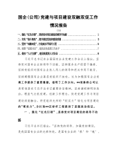 国企(公司)党建与项目建设双融双促工作情况报告目录一、强化“红色引领”,坚持党对项目建设的领导不动摇..................1二、夯实“战斗堡垒”,提升基层党组织建设质量......................3三、坚持“双融双促”,打造高水平标杆工程..........................5四、凝聚“思想共识”,提高宣传思想工作水平........................7五、做实“人才支撑”,建设高素质人才队伍.........................8习近平总书记在全国国有企业党建工作会议上指出,坚持党对国有企业的领导不动摇、坚持服务生产经营不...
