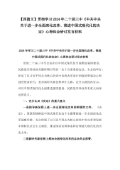 【四篇文】贯彻学习2024年二十届三中《中共中央关于进一步全面深化改革、推进中国式现代化的决定》心得体会研讨发言材料
